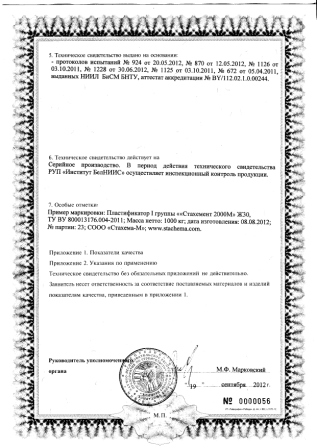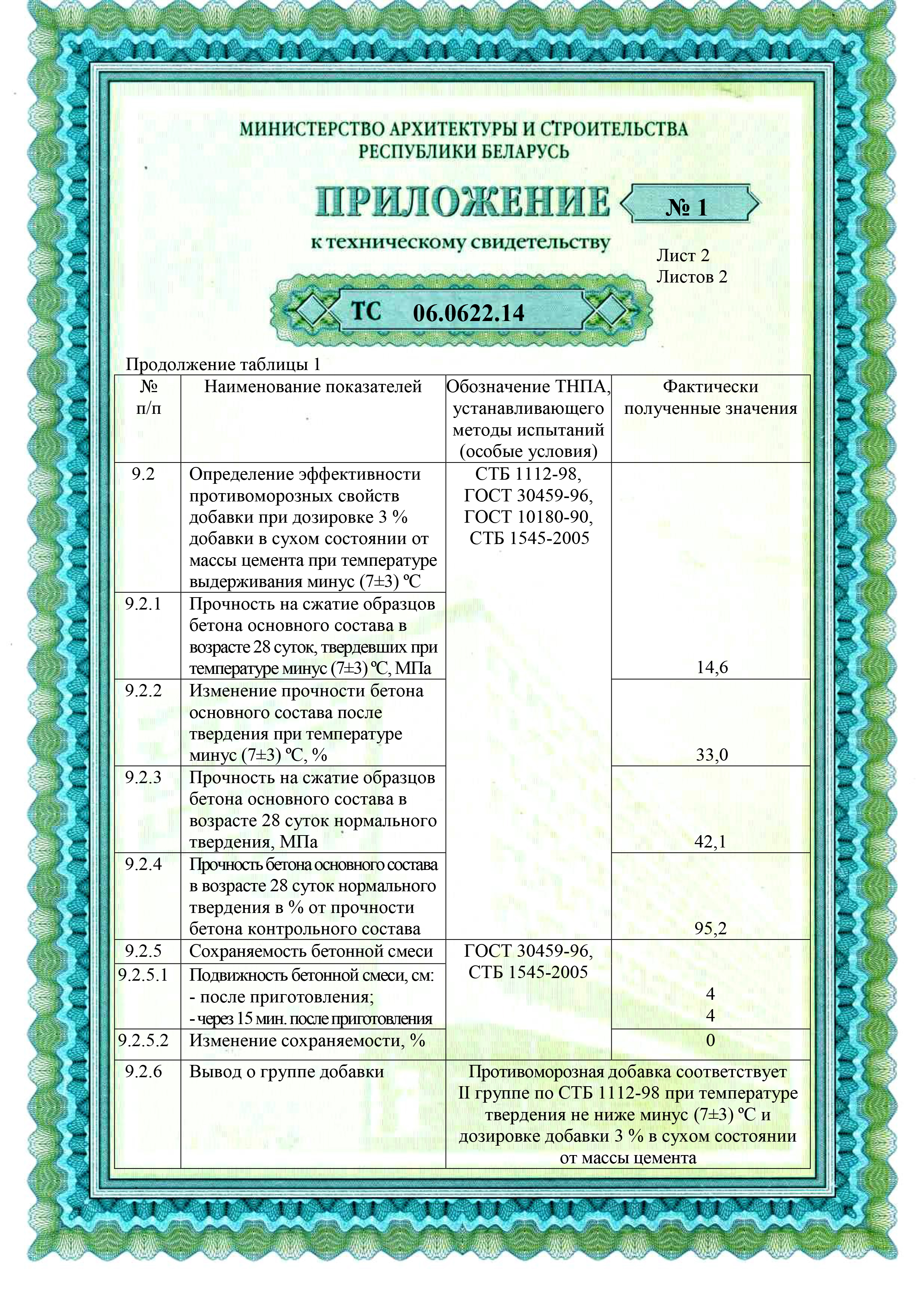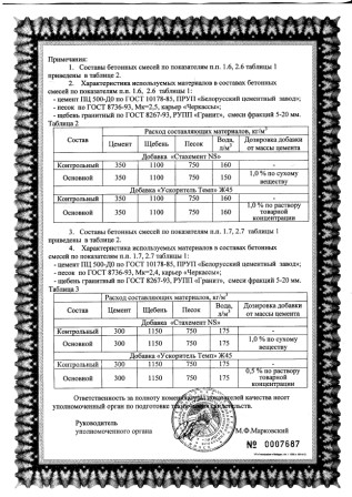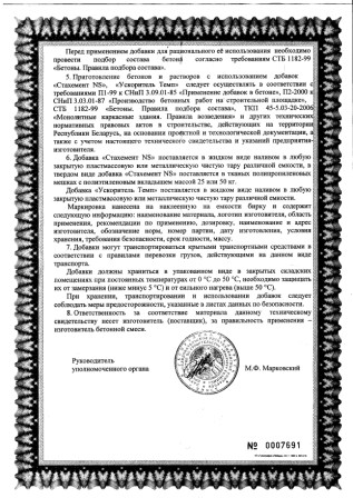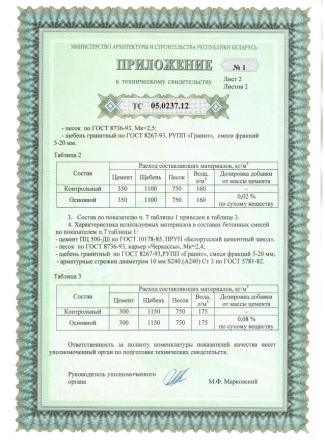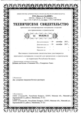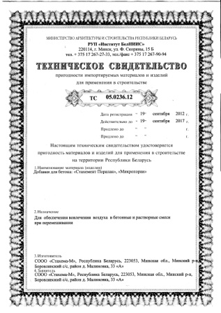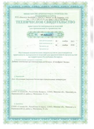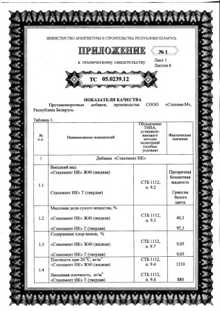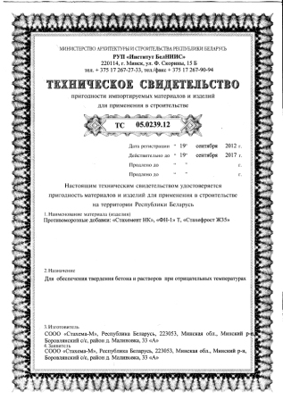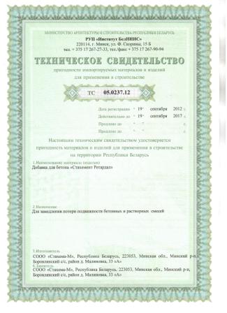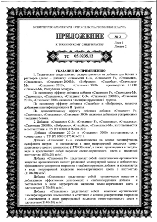 СООО «Стахема-М» основной своей целью считает постоянное расширение ас-сортимента выпускаемых высокоэффективных добавок для бетонов и растворов, что позволит потребителям получать бетоны с заданными высокими физико-механическими свойствами.